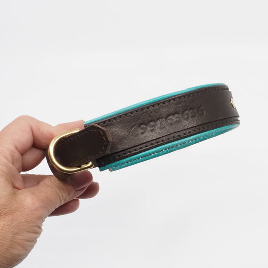 Hundehalsbånd i brunt skinn med turkise detaljer - large