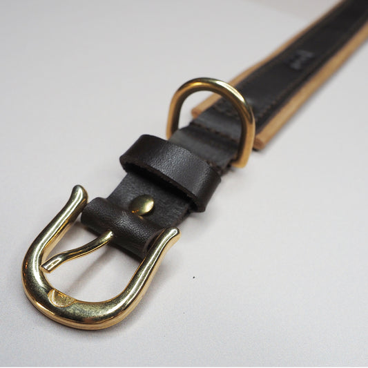 Hundehalsbånd 3 cm i brunt skinn med kontrastsøm