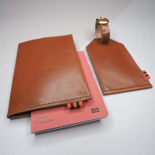Passmappe og bagasjetag - cognac